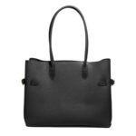 The exterior of the bag showcases a subtle embossed logo, adding a touch of elegance without overwhelming the design. The tote’s sturdy construction and reinforced base provide excellent support, ensuring that the bag retains its shape even when filled.