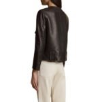Constructed from high-quality leather, the jacket boasts a supple texture that molds to the wearer’s body, providing both comfort and durability. The rich black hue adds a touch of edgy allure, while the smooth finish lends a polished look. The premium materials used in its creation ensure longevity, promising years of wear without compromising on style.