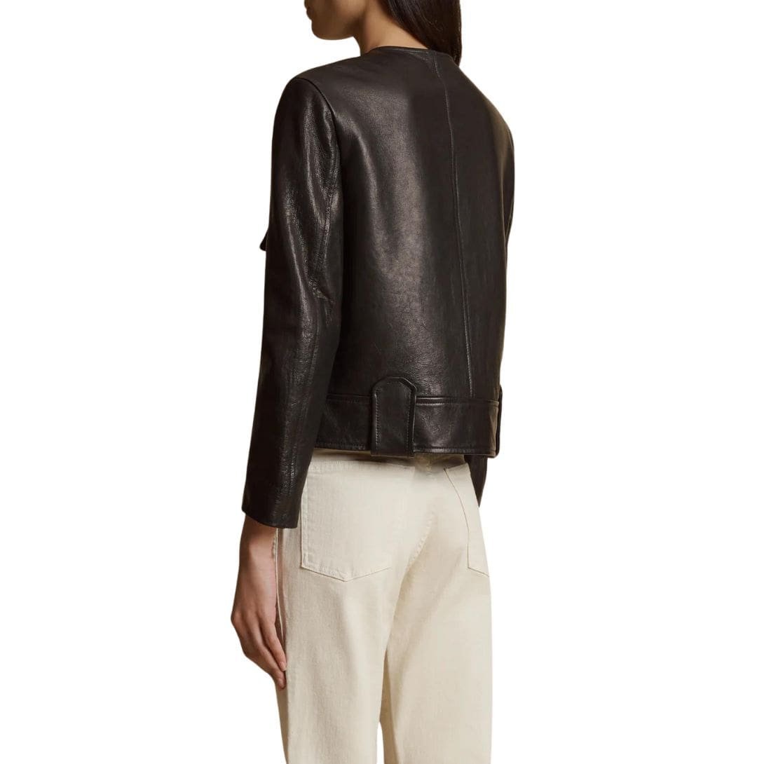 In essence, the Khaite Laybin Jacket in black leather epitomizes contemporary luxury, combining impeccable craftsmanship with timeless design. As a versatile and enduring piece, it serves as a sartorial investment that exudes sophistication and style for years to come.