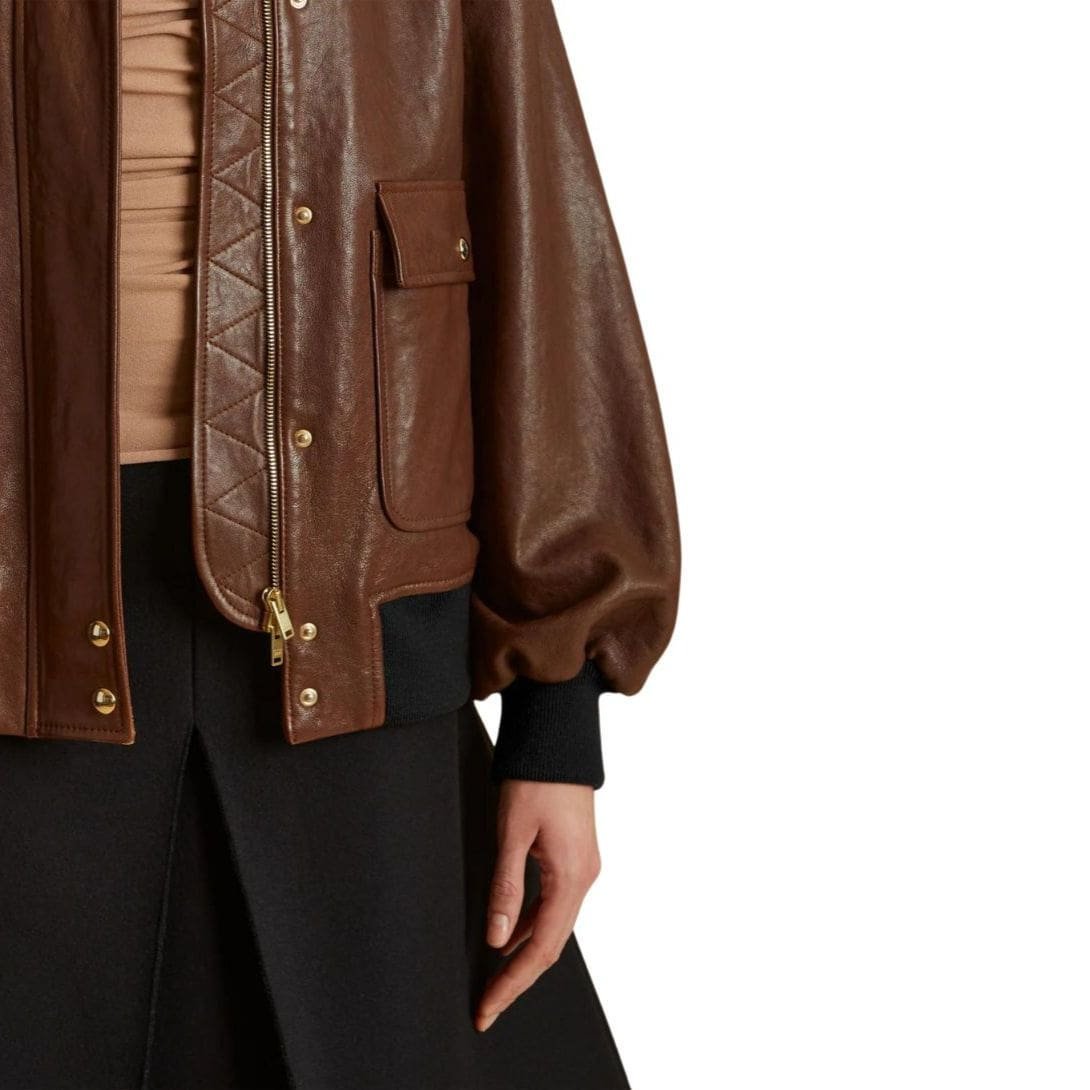 The Khaite Shellar Jacket in Classic Brown Leather epitomizes timeless elegance and modern sophistication. Crafted with meticulous attention to detail, this piece seamlessly blends luxury with functionality, making it a versatile addition to any wardrobe.KHAITE THE SHELLAR JACKET IN CLASSIC BROWN LEATHER