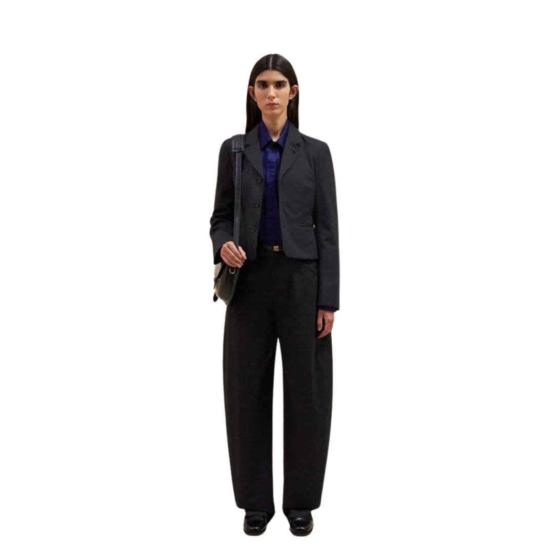 Inside, the jacket is fully lined, ensuring smooth wear and adding an extra layer of comfort. The internal construction is thoughtfully designed to maintain the jacket’s shape and enhance its overall durability. The sleeves are tailored to offer a comfortable fit, allowing for ease of movement while maintaining a polished look. LEMAIRE SINGLE BREASTED SHORT JACKET