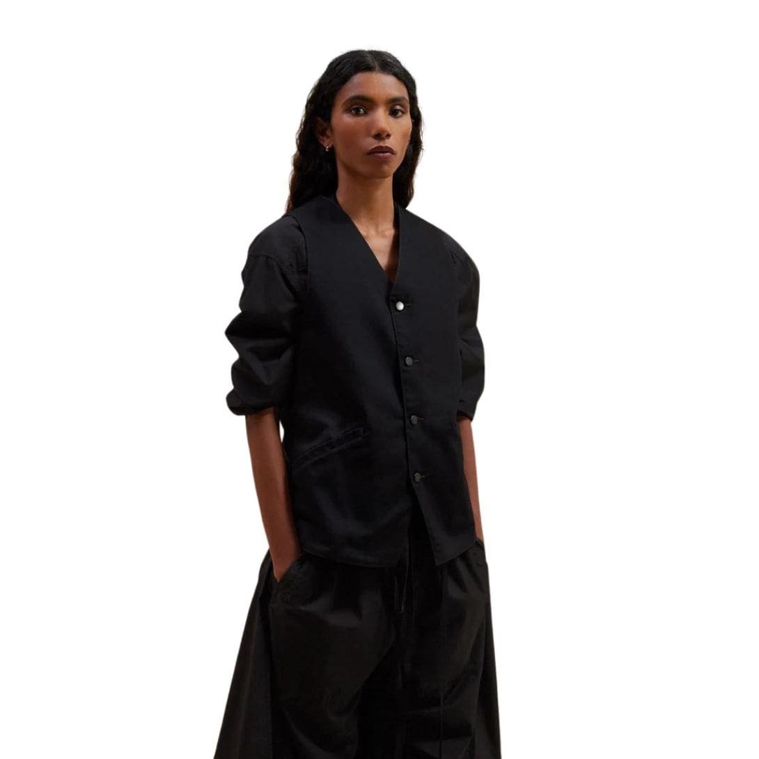 Overall, the Lemaire Sleeveless Gilet is a versatile and elegant addition to any wardrobe, ideal for those who appreciate high-quality craftsmanship and a refined aesthetic. Whether worn over a shirt for a polished office look or layered over a turtleneck for a chic, casual ensemble, this gilet exemplifies Lemaire’s dedication to timeless design and contemporary style.