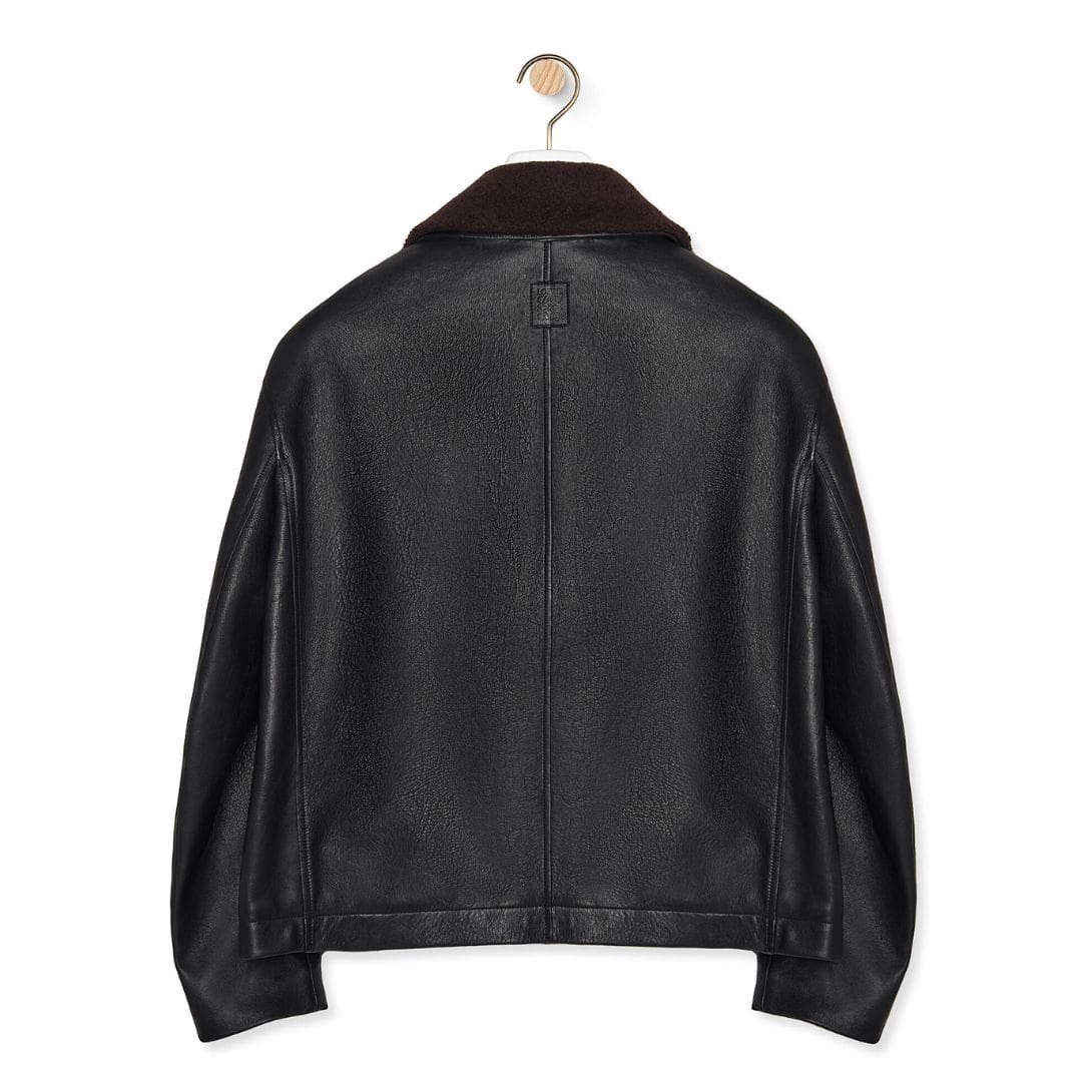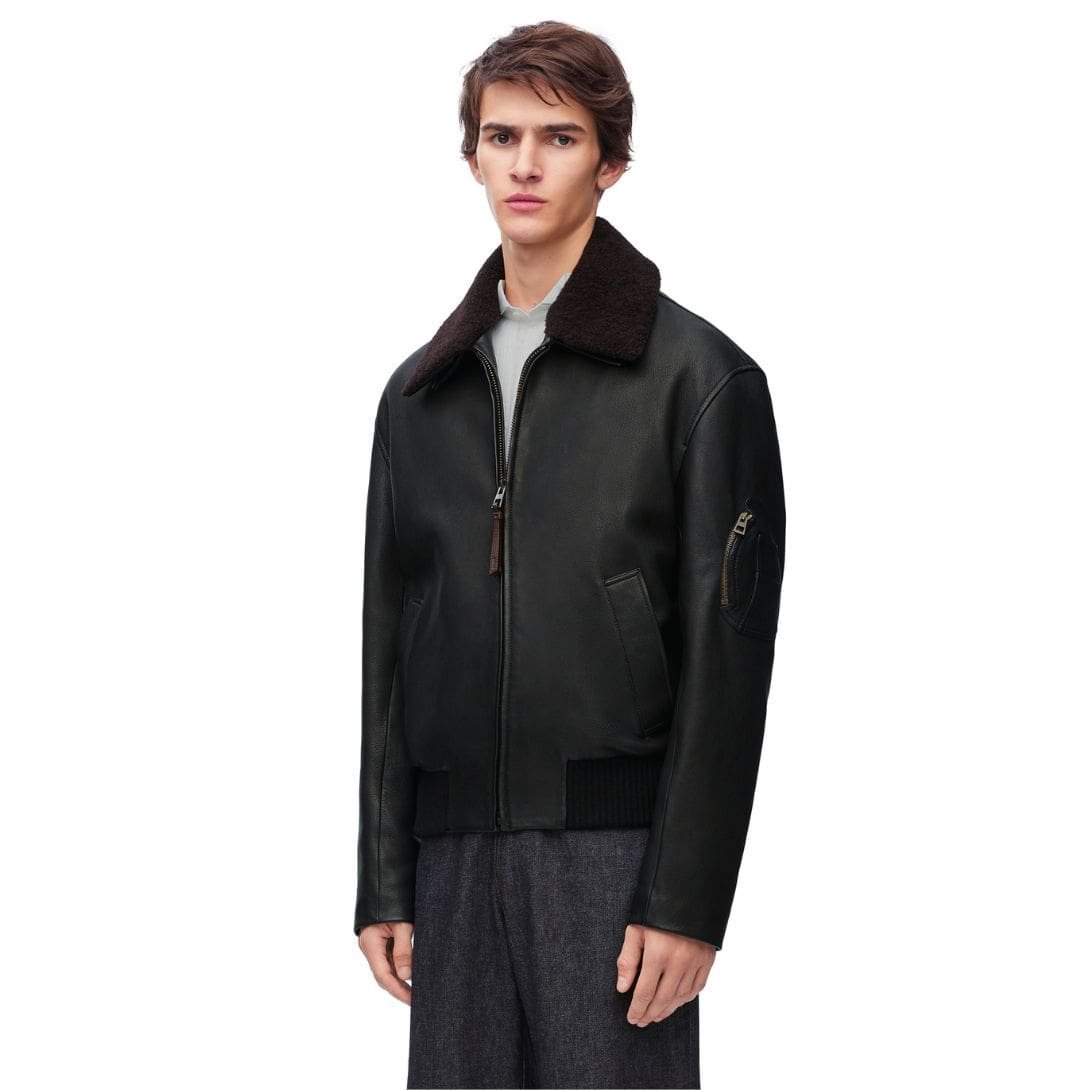Loewe’s design for this bomber jacket blends classic elements with contemporary flair. The jacket features a sleek silhouette that maintains the traditional bomber shape while introducing subtle, modern updates. The nappa lambskin leather is treated to achieve a smooth, glossy finish that catches the light beautifully, enhancing the overall elegance of the piece. Additionally, the bomber jacket is lined with a soft fabric that provides added comfort and warmth, perfect for layering in various seasons.