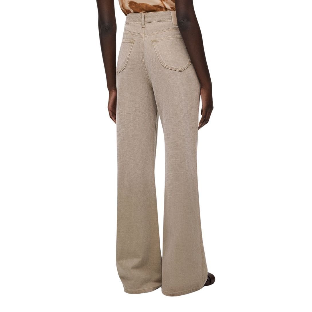 Ideal for those who appreciate casual elegance and contemporary fashion, Loewe’s bootleg jeans in khaki green cotton offer a versatile addition to any wardrobe. Their lightweight feel, breathable fabric, and unique color make them a statement piece that effortlessly elevates everyday attire with a touch of modern sophistication.