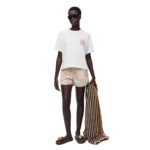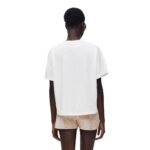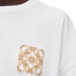 The standout feature of this t-shirt is its boxy fit, which adds a contemporary edge to its classic design. The relaxed silhouette drapes elegantly, offering a laid-back yet sophisticated look. It’s perfect for creating effortless outfits, whether paired with jeans for a weekend stroll or layered under a blazer for a more polished ensemble. This design element reflects Loewe’s commitment to modern aesthetics and versatility in fashion.