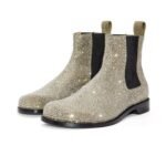 The boots feature a sleek, ankle-length silhouette characteristic of the classic Chelsea boot style, known for its versatility and comfort. The upper is constructed from premium calf suede, offering a soft, supple feel and a rich texture that enhances the boot’s elegance. The suede material not only provides durability but also ensures a comfortable fit that molds to the shape of the wearer’s foot over time.