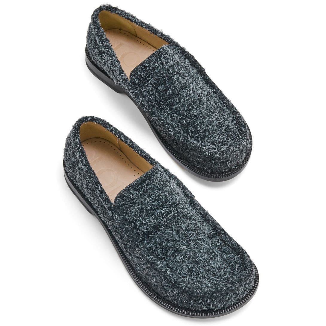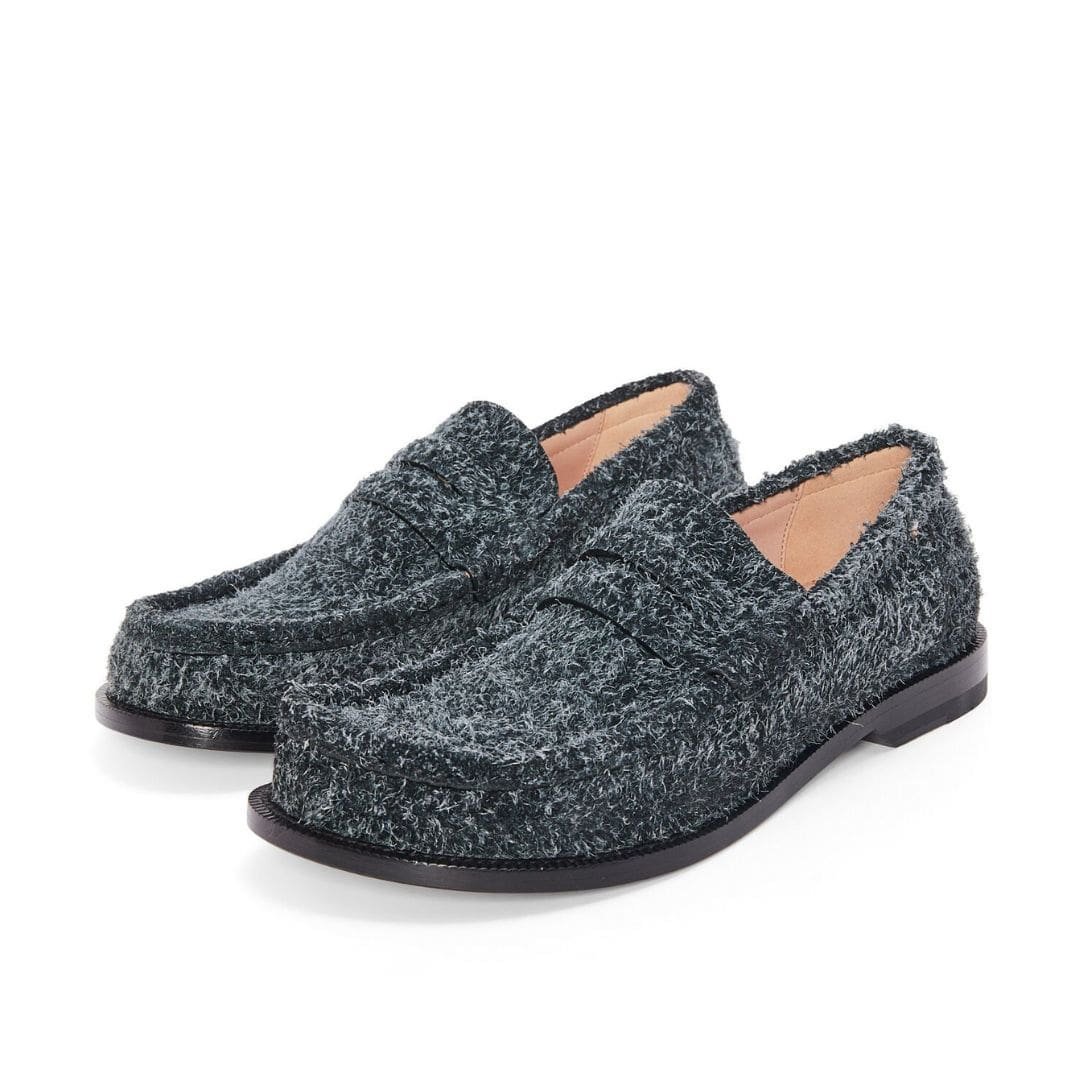 At first glance, the Loewe Campo Loafer catches the eye with its sleek silhouette and minimalist detailing. The suede’s brushed finish enhances its softness and depth, offering a tactile experience that is both luxurious and comfortable. The loafer features a rounded toe and a low stacked heel, combining traditional styling with modern sensibilities.
