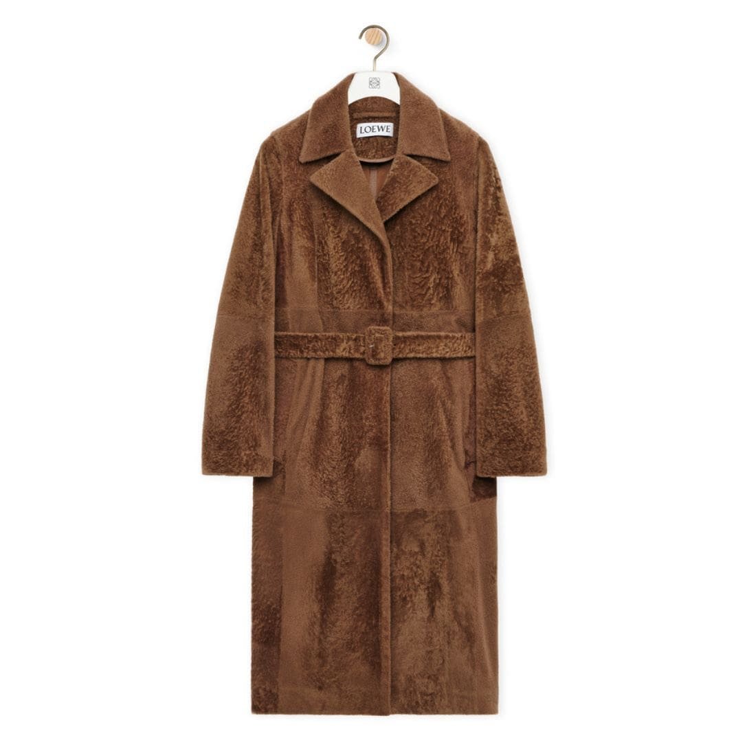 The coat’s functional details, such as its deep pockets and adjustable closures, provide practical benefits while maintaining its chic design. Loewe’s shearling coat is more than just a fashion item; it is a versatile investment piece that combines style, comfort, and sustainability. With its timeless appeal and impeccable craftsmanship, it remains a standout choice for those seeking both elegance and practicality in their winter wardrobe.