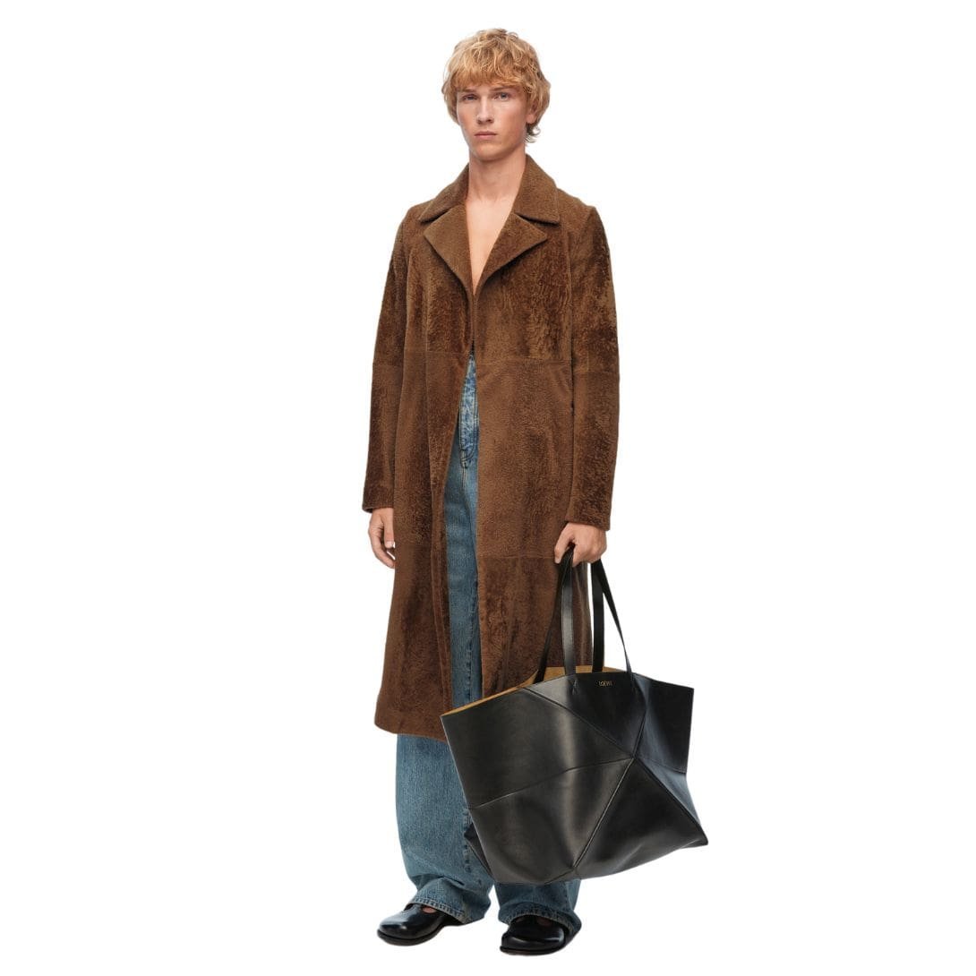 In addition to its striking appearance, the Loewe shearling coat is also a testament to the brand’s commitment to sustainability. The shearling used is sourced responsibly, reflecting Loewe’s dedication to ethical practices and environmental consciousness. This thoughtful approach not only ensures the coat’s luxurious feel but also aligns with modern values of responsible fashion.