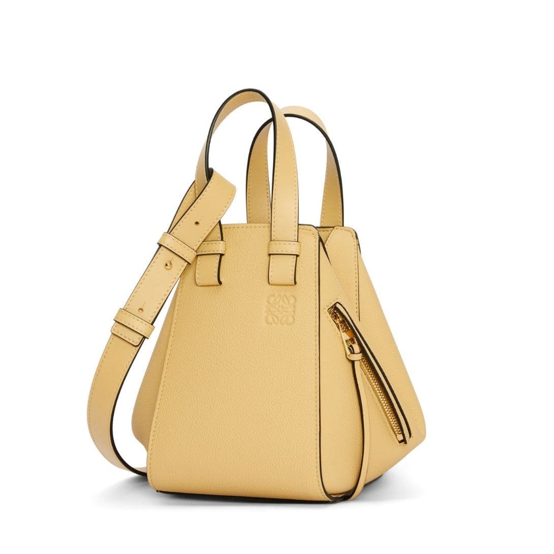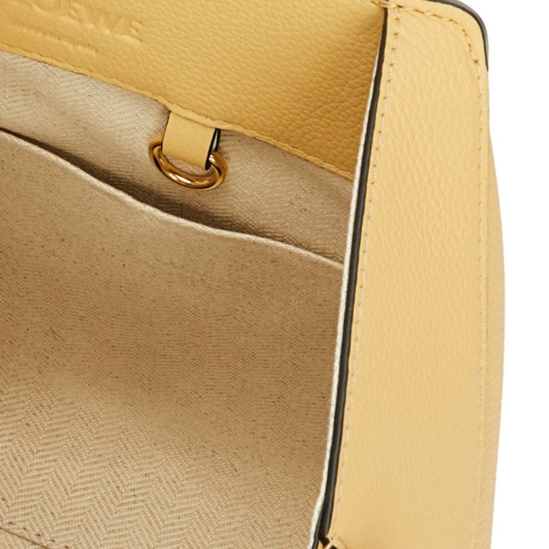 The LOEWE Compact Hammock Bag In soft grained calfskin leather. This premium material offers a sophisticated and textured finish, ensuring both durability and elegance, making it an essential addition to any fashion-forward wardrobe.