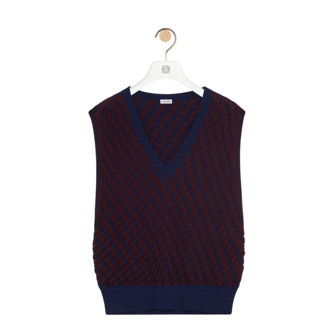 Loewe’s design philosophy is evident in the vest’s understated elegance and timeless appeal. Its clean lines and classic silhouette provide a sophisticated look that remains relevant year after year. Whether paired with jeans for a relaxed weekend ensemble or combined with tailored trousers for a smart-casual appearance, the vest adds effortless charm and adaptability to any wardrobe.