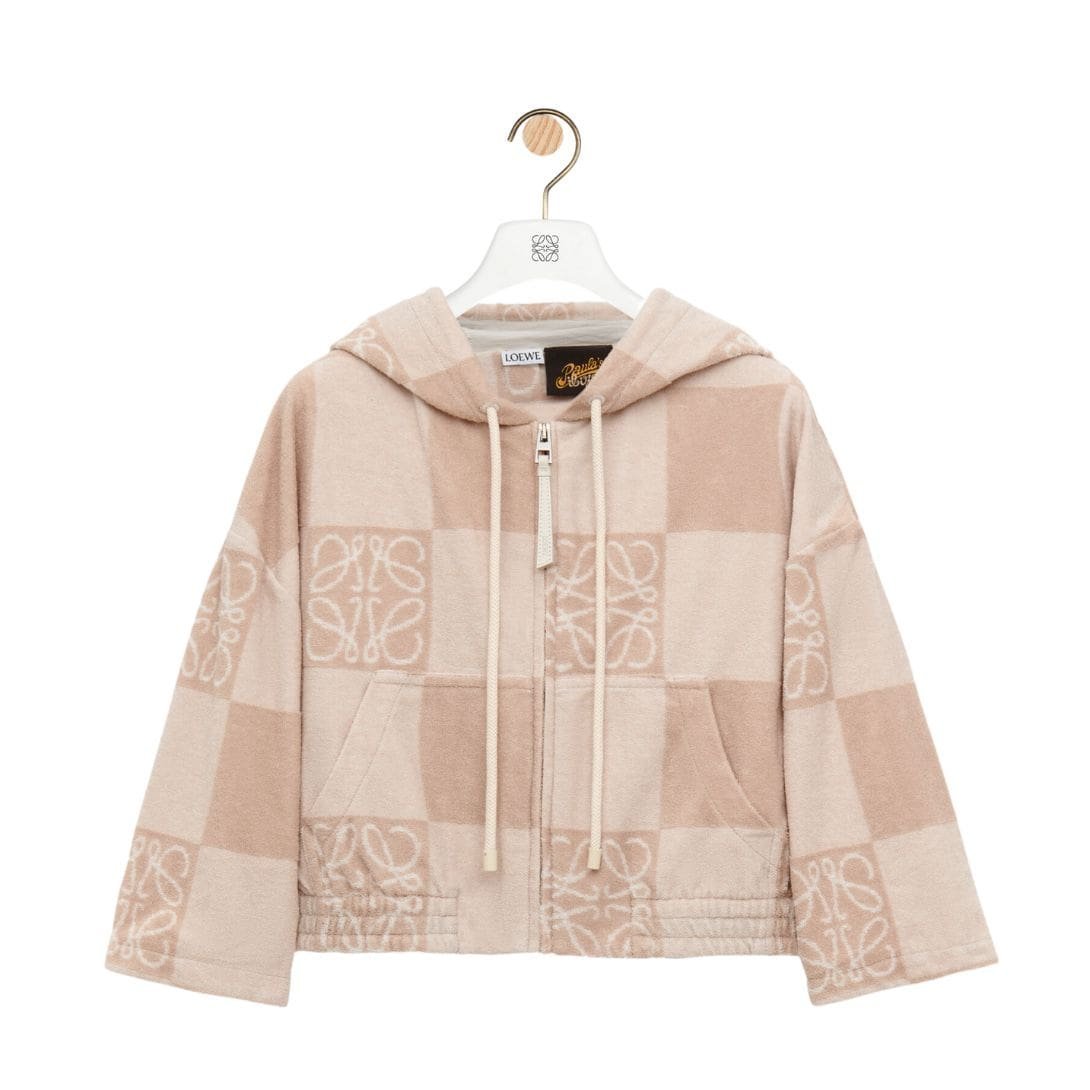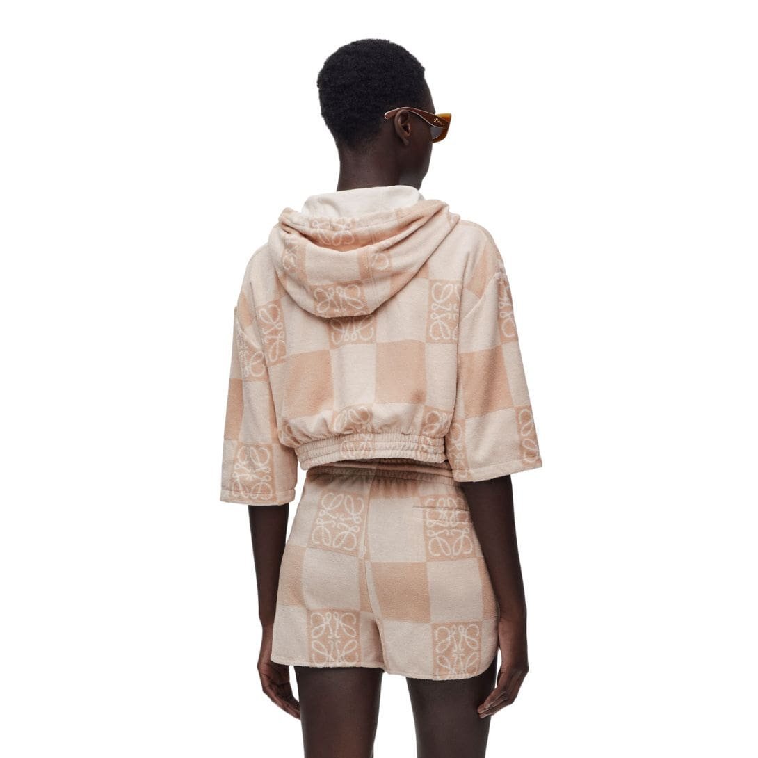 LOEWE CROPPED HOODIE IN JACQUARD COTTON TERRY