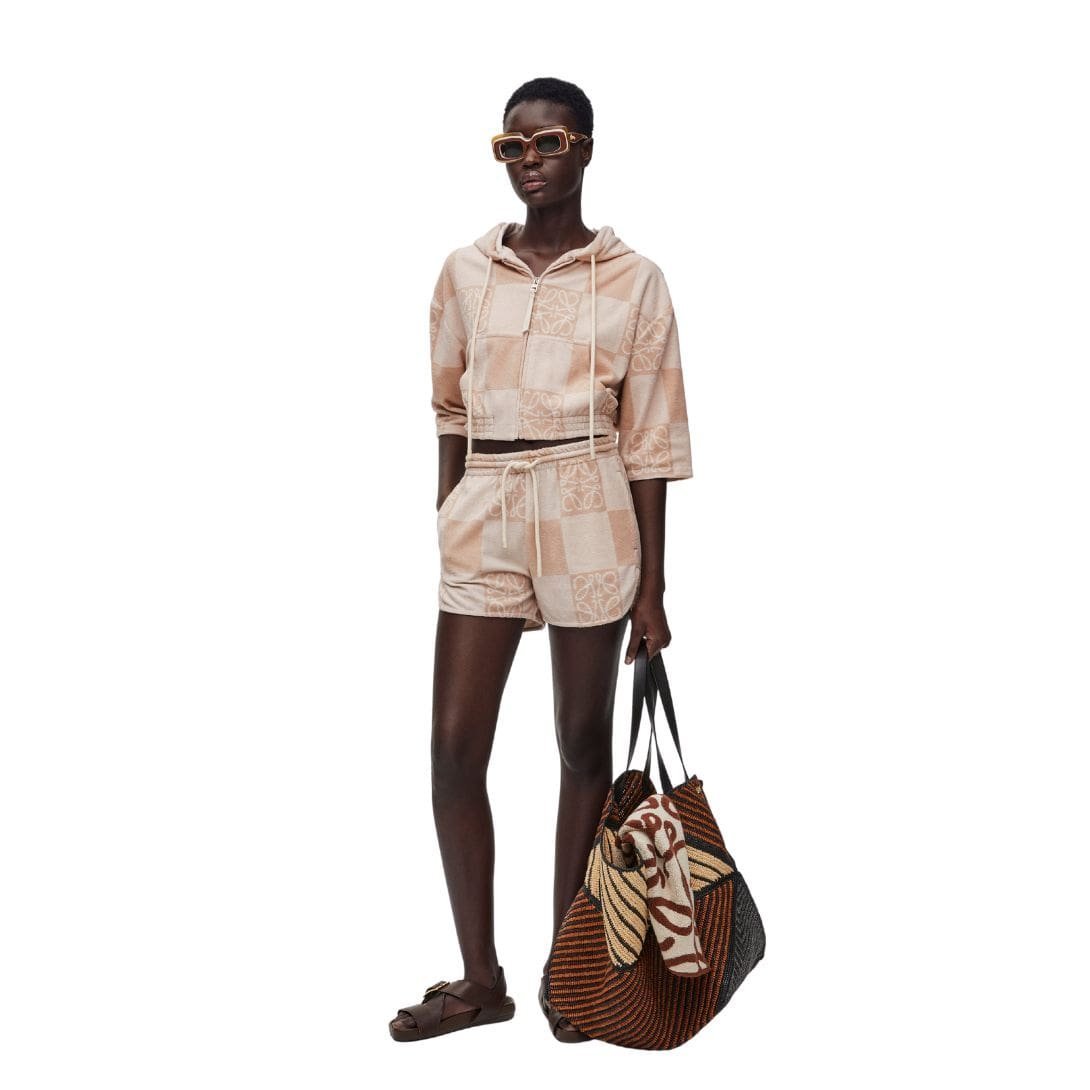 With its blend of cotton and polyester, lightweight feel, and stylish cropped design, the Loewe cropped hoodie in jacquard cotton terry offers both comfort and style. Whether you’re running errands or relaxing with friends, this hoodie provides a chic and practical option that reflects contemporary fashion trends while maintaining the brand’s signature quality and craftsmanship.