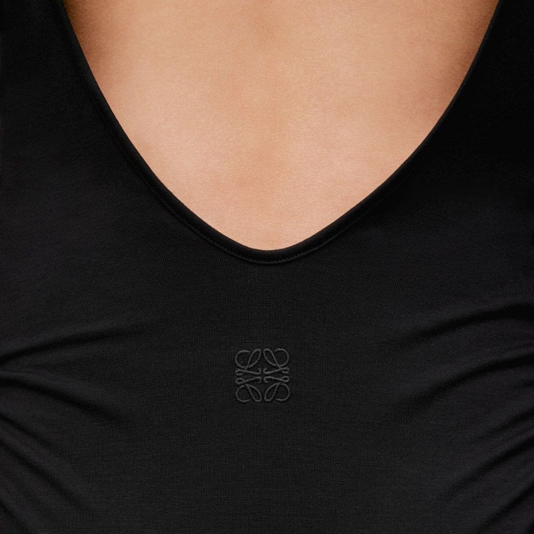 In summary, Loewe’s draped dress in lyocell is a testament to modern luxury and sustainable fashion. Its combination of eco-friendly material, sophisticated design, and impeccable craftsmanship makes it a must-have for those who value both style and comfort. This dress promises to be a timeless staple in any wardrobe, offering elegance and versatility with every wear.