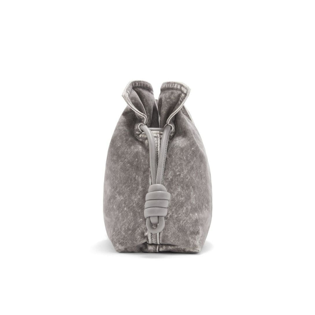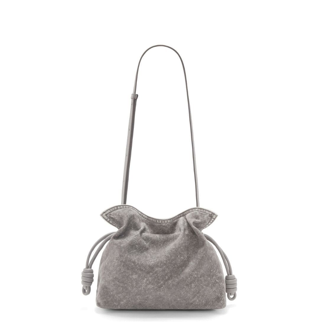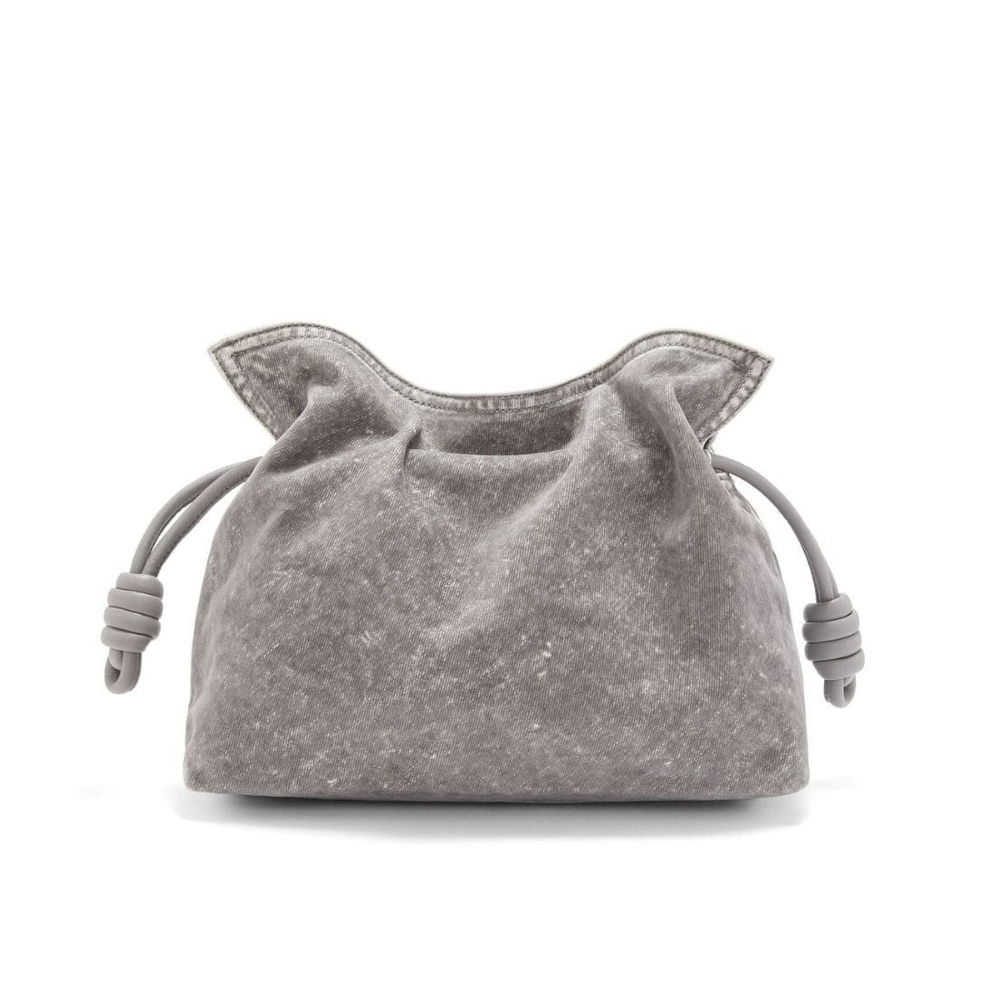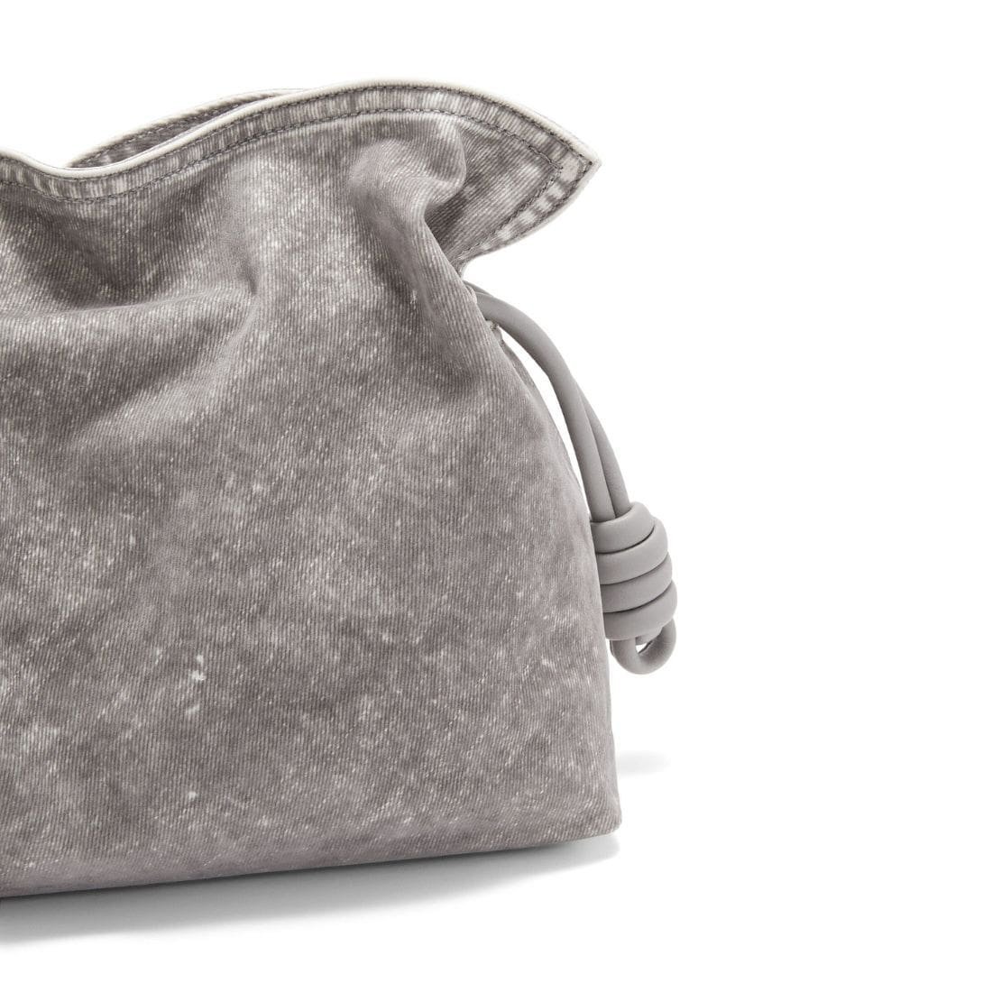 The LOEWE Flamenco Clutch Bag in Denim Flocked Denim is a chic and contemporary accessory that seamlessly combines casual fabric with high-end design. This clutch bag stands out with its distinctive grey color and palladium metallic accents, offering a modern and stylish look suitable for various occasions.