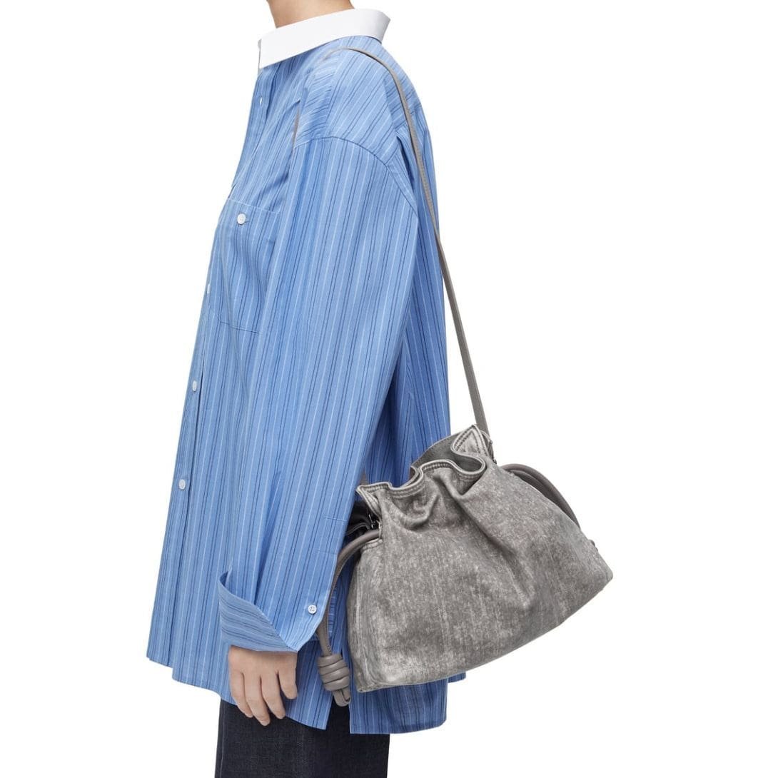 Crafted from premium flocked denim, the bag not only showcases LOEWE’s exceptional craftsmanship but also introduces a unique texture that adds depth and interest to the design. The flocked denim gives the bag a soft, velvety feel, enhancing its luxurious appeal while maintaining a relaxed, casual vibe.