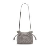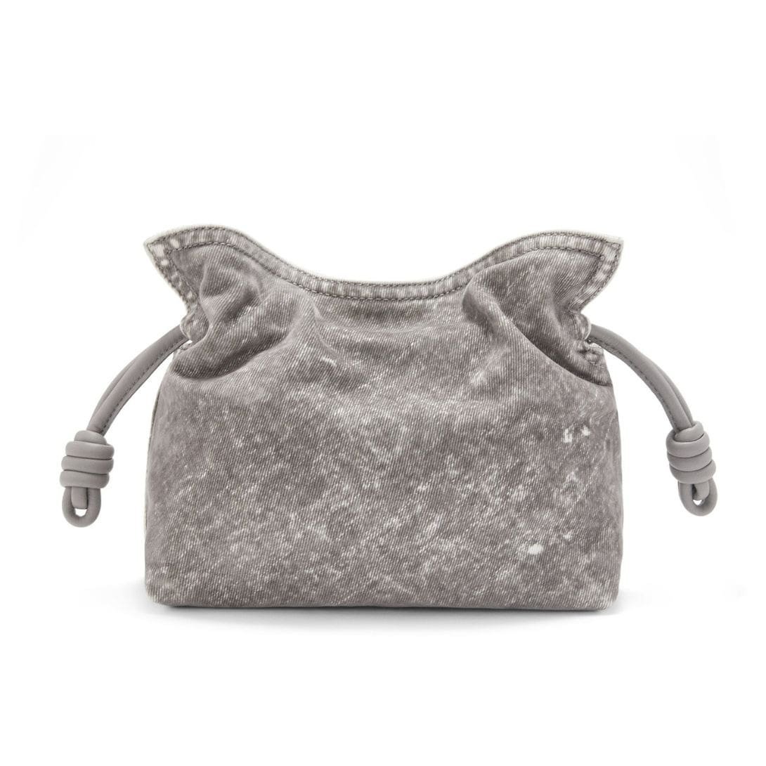 In summary, the LOEWE Flamenco Clutch Mini Bag in Flocked Denim is a fashionable and practical accessory. With its grey flocked denim material, palladium metallic accents, adjustable shoulder strap, and lightweight construction, it offers both style and functionality. This mini bag is a must-have for those who appreciate unique design and high-quality craftsmanship.