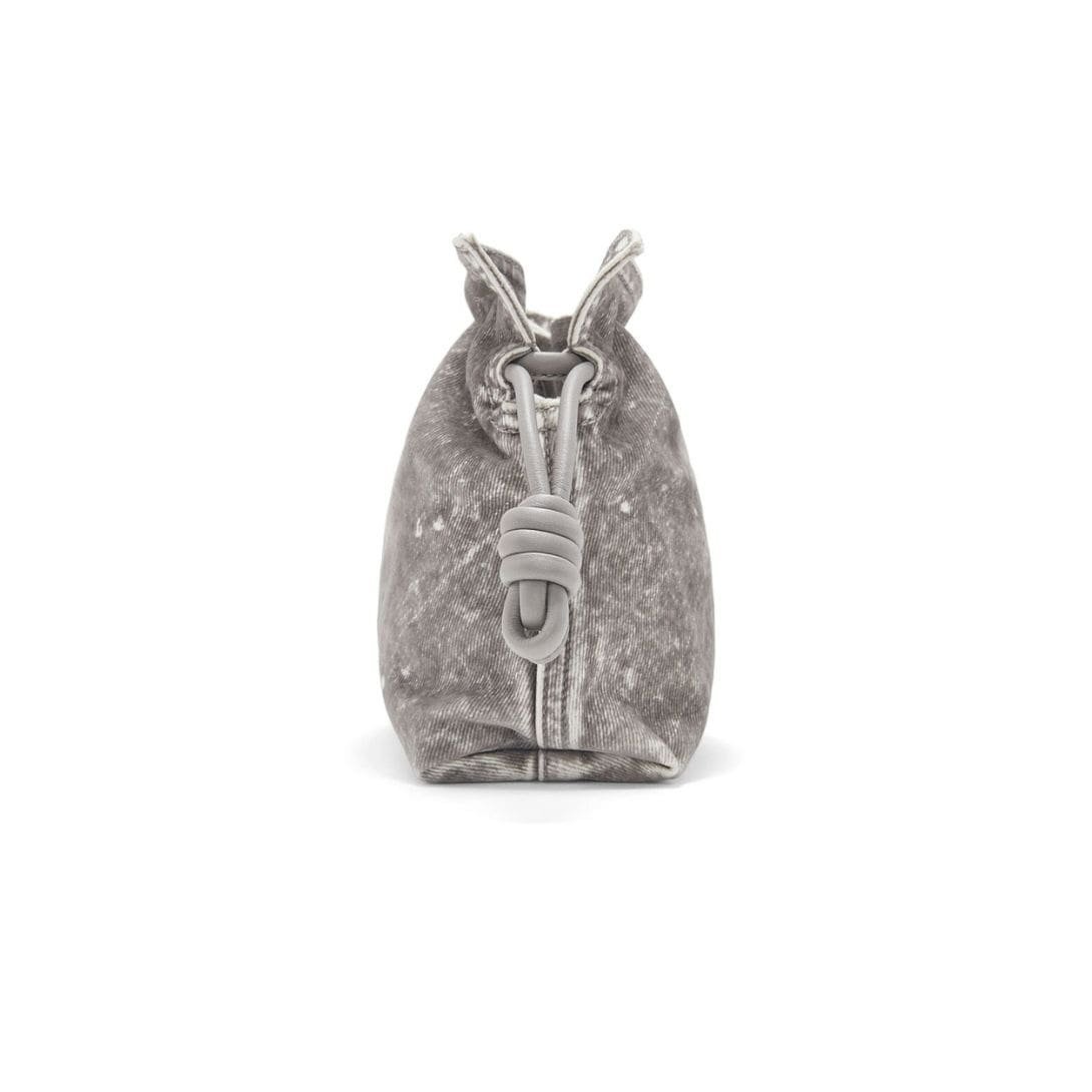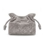The LOEWE Flamenco Clutch Mini Bag in Flocked Denim is a stylish and contemporary accessory that combines unique texture with high-end design. This mini bag stands out with its grey color and palladium metallic accents, offering a modern and versatile look that is perfect for various occasions.