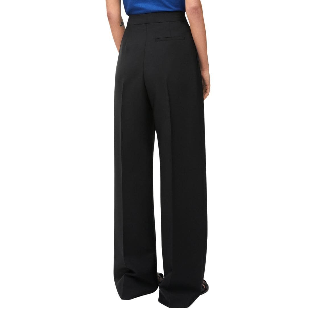 Loewe’s attention to detail is evident in the tailored cut and refined finishing touches of these trousers. The clean lines and sharp pleats contribute to a polished appearance, while the high waistline creates a streamlined effect that pairs beautifully with a variety of tops, from tucked-in blouses to cropped sweaters. Additionally, the trousers feature a classic zip fly and button closure, further enhancing their sophisticated design.