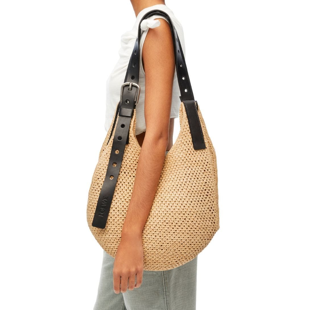 LOEWE HOBO BAG IN RAFFIA AND CALFSKIN