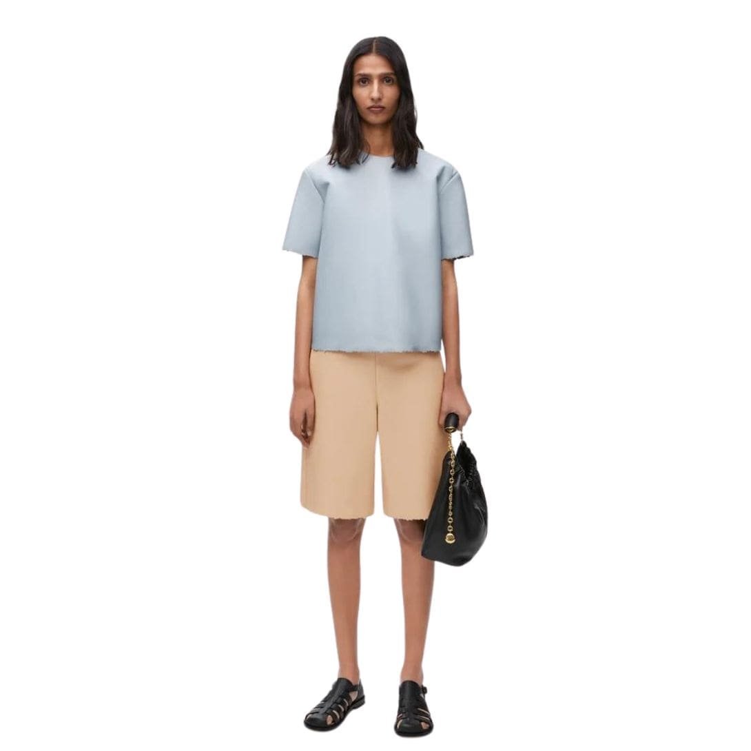The Loewe lambskin nappa T shirt is a luxurious blend of elegance and casual style, crafted from premium nappa leather. Weighing 0.6 kg, this T-shirt offers a unique combination of softness and durability, making it a standout piece in any wardrobe.