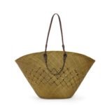 This Loewe Large Anagram Basket Bag In Iraca Palm And Calfskin boasts versatility and elegance with its adjustable handle drop, ranging from 15 to 30 centimeters, catering to various carrying preferences. Despite its spaciousness, weighing only 0.46 kilograms, it offers practicality without compromising on style.