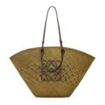 LOEWE LARGE ANAGRAM BASKET BAG IN IRACA PALM AND CALFSKIN