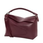 The LOEWE Large Puzzle Bag in Shiny Calfskin is a striking embodiment of modern sophistication and exceptional craftsmanship. This versatile bag, a standout piece from LOEWE’s renowned Puzzle collection, is crafted from premium shiny calfskin leather that exudes a luxurious sheen. Its distinctive geometric design sets it apart from traditional handbags, with angular lines and innovative foldable structure that seamlessly blend style and function. LOEWE LARGE PUZZLE BAG IN SILK CALFSKIN
