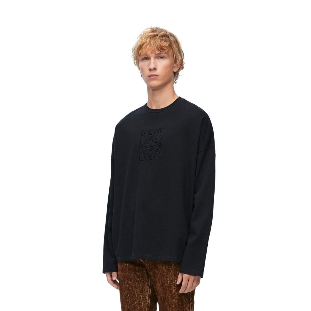 A signature Loewe touch is evident in the subtle branding details. The T-shirt may feature the iconic Loewe anagram embroidered discreetly, adding a touch of luxury without overpowering the minimalist design. The understated logo placement ensures the shirt remains versatile, easily paired with a variety of outfits. LOEWE LOOSE FIT LONG SLEEVE T SHIRT IN COTTON