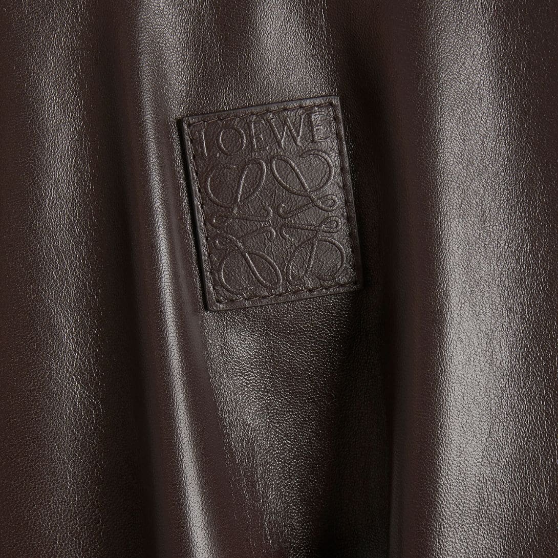 LOEWE Padded Bomber Jacket in Nappa Lambskin embodies the pinnacle of luxury and craftsmanship in outerwear. This jacket stands out with its refined nappa lambskin leather, known for its soft, supple texture and exceptional durability. The high-quality leather not only offers a sleek, sophisticated look but also ensures lasting comfort and resilience.
