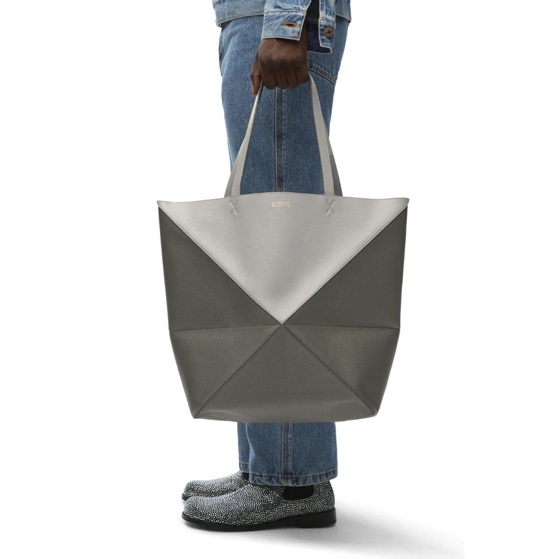 Introducing the LOEWE Puzzle Fold Tote XL Bag In Shiny Calfskin, a perfect fusion of luxury and practicality crafted from polished calf leather. This spacious tote is designed for those who demand both elegance and ample storage in their accessories, making it an essential addition to any sophisticated wardrobe.