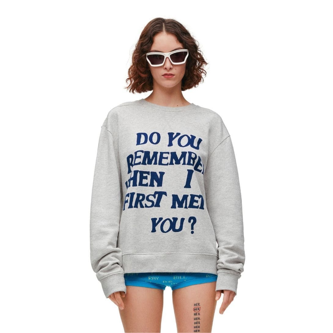 Subtle details elevate the sweatshirt to a luxurious staple. Loewe’s iconic Anagram logo is delicately embroidered or printed, often discreetly placed, adding a touch of understated elegance. The cuffs and hem are finely ribbed, providing a tailored finish that keeps the silhouette structured yet comfortable.