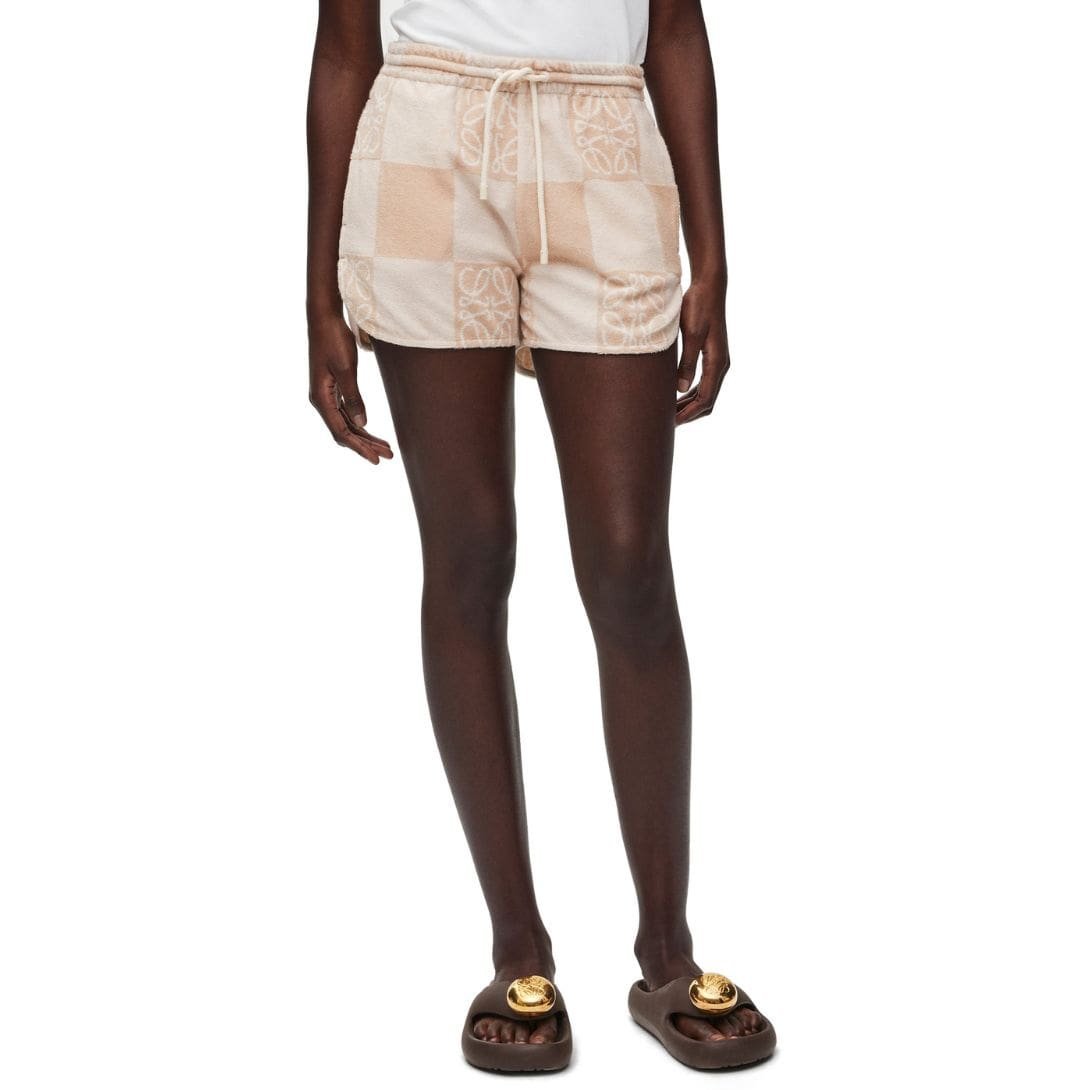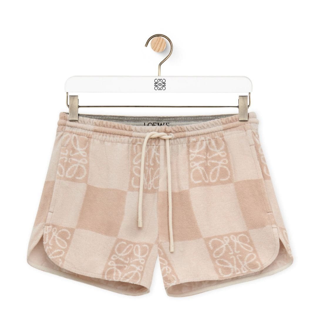 The design of Loewe shorts reflects a modern aesthetic while staying true to classic tailoring principles. The terry cotton fabric is lightweight yet absorbent, making these shorts ideal for a variety of settings, from lounging at home to casual outings. The jacquard pattern introduces a visual interest that is subtle yet striking, making these shorts a versatile piece that can be easily dressed up or down.