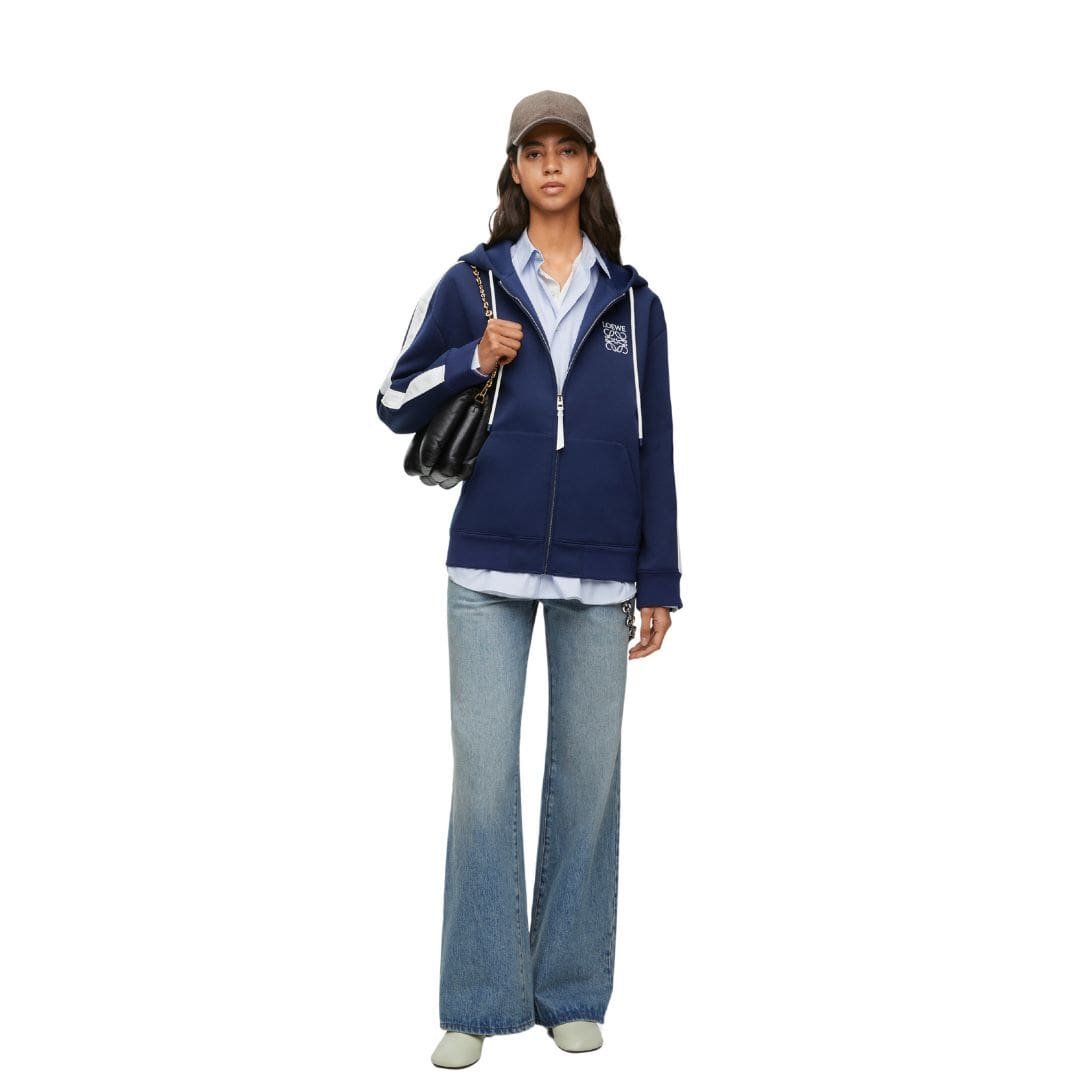 Versatility is a key highlight of the LOEWE Tracksuit Jacket with Hood. Its modern design and neutral color options make it easy to pair with a variety of outfits. Whether layered over a t-shirt and joggers for a workout session or paired with jeans for a relaxed, casual look, the jacket adapts seamlessly to different settings and occasions.