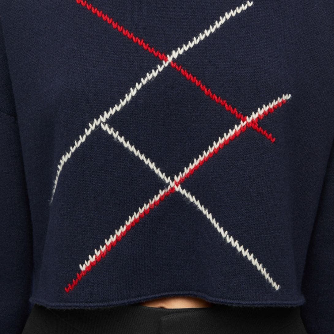 The sweater’s fit is designed to be flattering and versatile. It can be easily paired with a variety of outfits, from casual jeans to tailored trousers, making it suitable for both casual and more polished looks. The ribbed trims at the cuffs, neckline, and hem provide a snug fit, enhancing the overall silhouette and ensuring the sweater retains its shape over time.