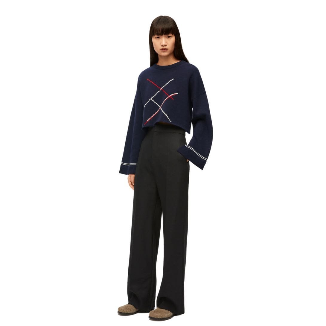 Loewe wool diamond sweater embodies the perfect blend of warmth and style, crafted with meticulous attention to detail and showcasing premium craftsmanship. Made from high-quality wool, this sweater highlights Loewe’s dedication to using the finest materials for exceptional comfort and durability.