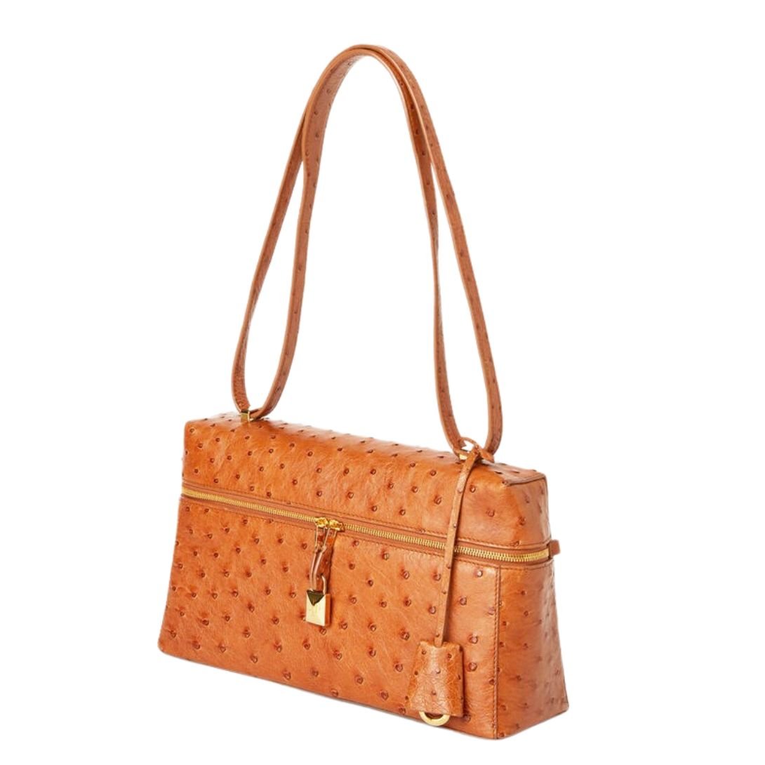 - Shoulder strap in matching ostrich leather, offering a seamless, elegant look.