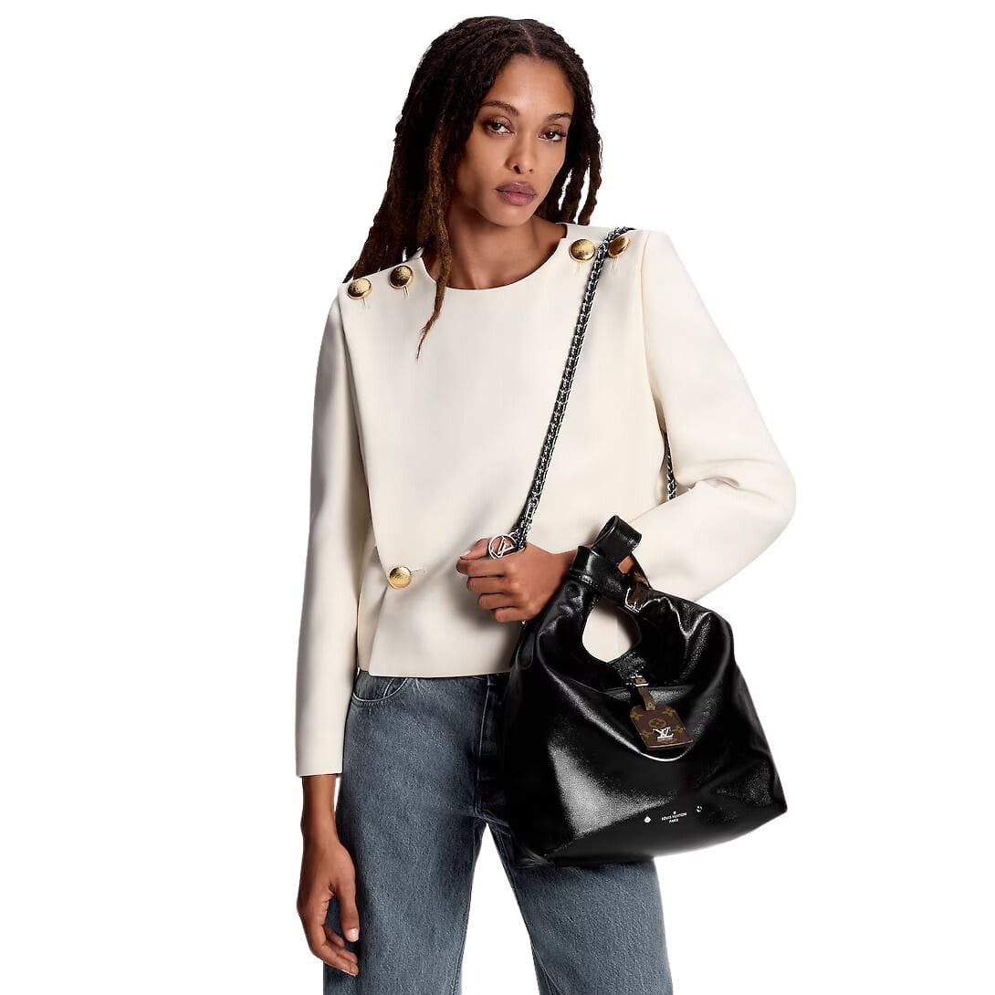 Introducing the LOUIS VUITTON ATLANTIS MM bag from Louis Vuitton’s esteemed Dark Side collection, where elegance meets an avant-garde edge. Crafted from sumptuous nappa calfskin with a lustrous finish, this bag exudes sophistication with a hint of rebellion.