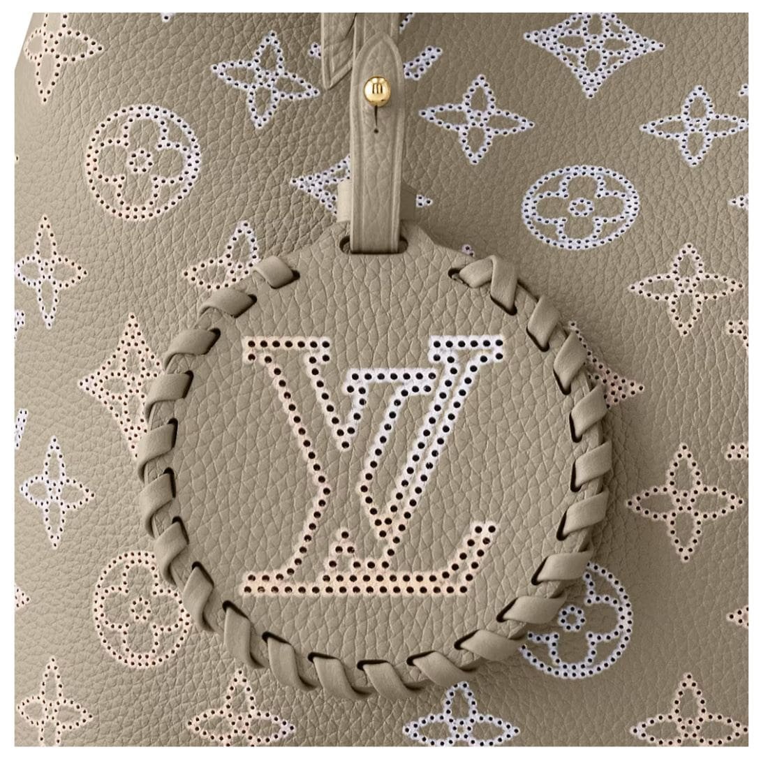 Each element of this bag is meticulously crafted, from the calf leather trim to the microfiber lining and light-gold-color hardware, exuding understated elegance at every turn. The inclusion of a removable LV leather braided charm adds a touch of personalized charm.