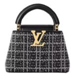 A dazzling highlight from the Spring-Summer 2024 runway, the LOUIS VUITTON CAPUCINES MINI Beads handbag is a testament to Nicolas Ghesquière’s visionary design and Louis Vuitton’s unparalleled craftsmanship. This exquisite piece showcases a unique “tweed” pattern, meticulously crafted from tiny glass beads set against a luxurious LOUIS VUITTON CAPUCINES MINI black satin background. The material’s subtle shimmer is beautifully complemented by the iconic jewel-like fittings and the golden LV signature, making it a glamorous addition to any ensemble.