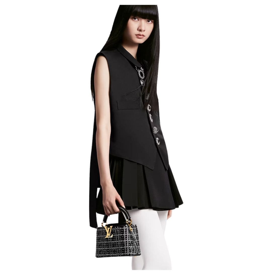 Measuring 8.3 x 5.5 x 3.1 inches (length x height x width), this LOUIS VUITTON CAPUCINES MINI handbag is as functional as it is stylish. It features a compartmented interior with a flat pocket, perfect for organizing your essentials. The design allows for versatile carrying options, with a double carry style that lets you wear the flap inside or outside. The removable and adjustable strap offers a drop length ranging from 21.7 inches to a maximum of 23.2 inches, allowing for comfortable shoulder or crossbody wear. Additionally, the single handle provides an elegant hand-carry option.