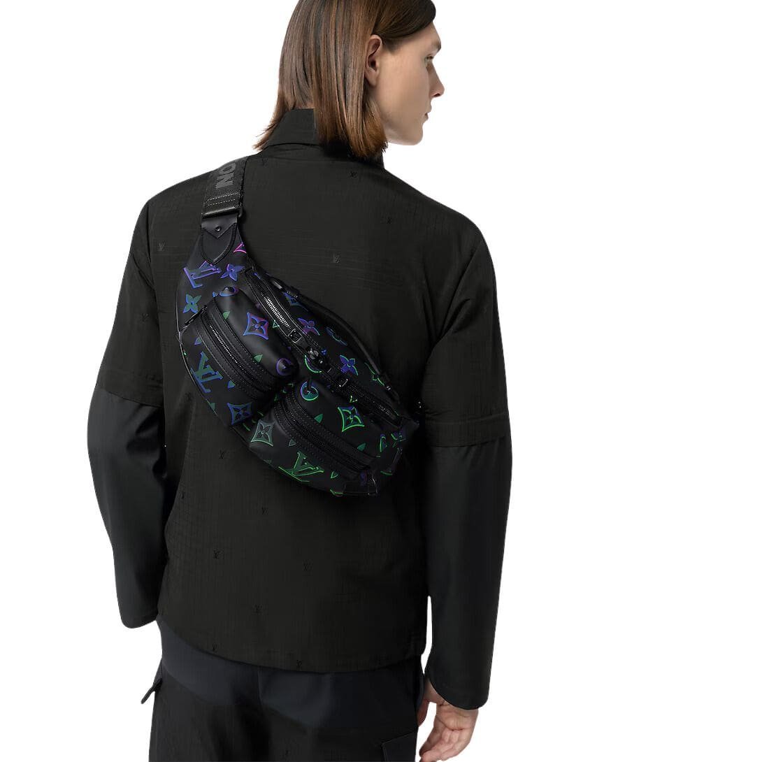 Measuring a practical 17.7 x 6.7 x 3.5 inches (length x height x width), the LOUIS VUITTON COMET BUMBAG is designed for functionality without compromising style. Its sleek silhouette in captivating Black Borealis is accentuated by cowhide-leather trim and black-color hardware, creating a striking aesthetic that stands out in any crowd.
