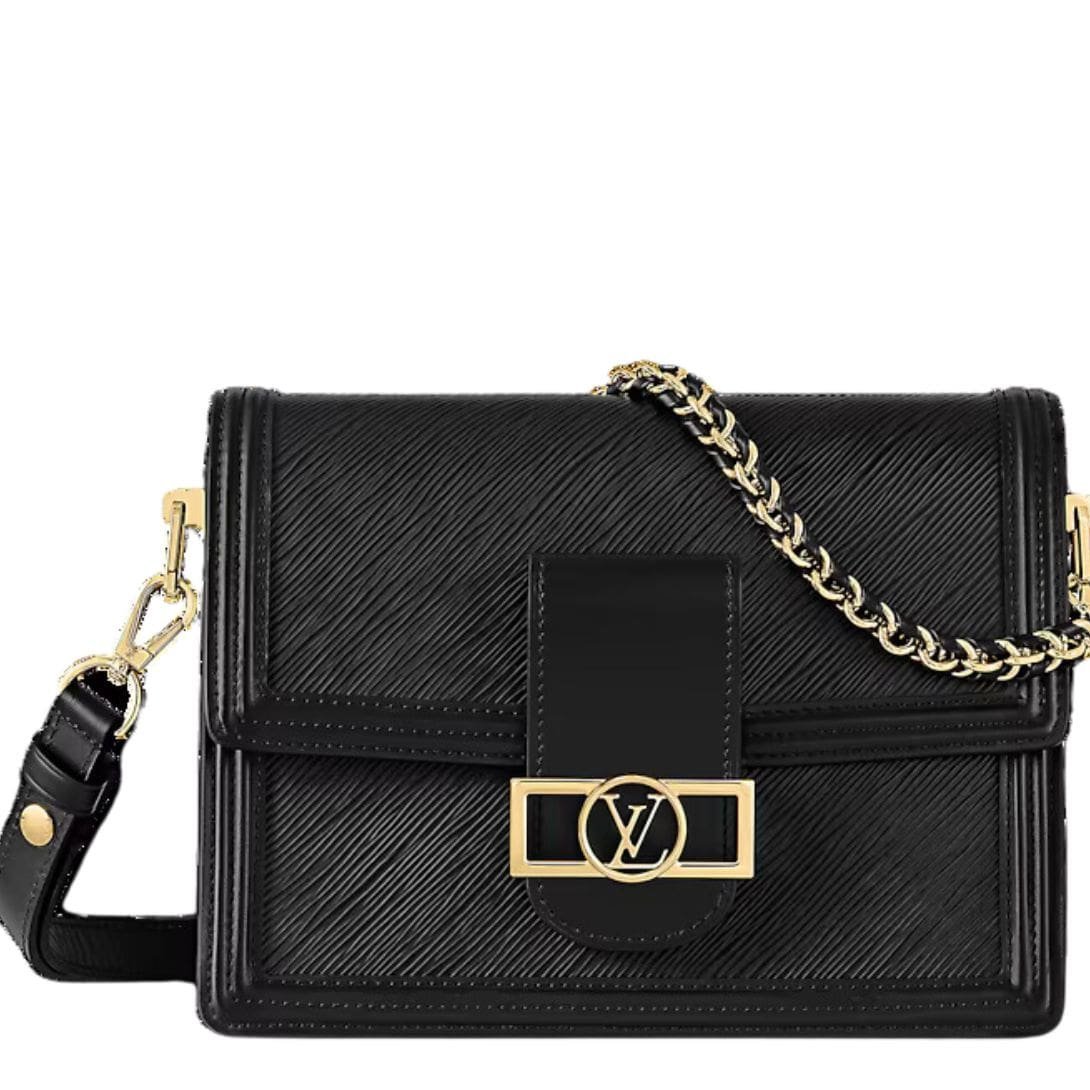 Introducing the LOUIS VUITTON DAUPHINE MM reimagined in Louis Vuitton’s exquisite Epi leather for Spring-Summer 2020. This iconic silhouette marries elegance with functionality, boasting multiple inside compartments and a removable braided leather-chain strap, making it the perfect companion for everyday use. Available in classic black or a captivating shade of blue, the Dauphine MM effortlessly elevates any ensemble.