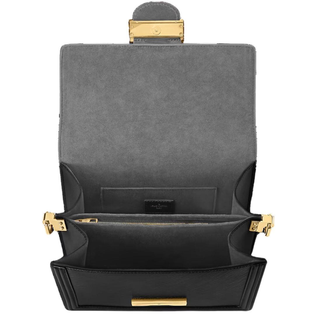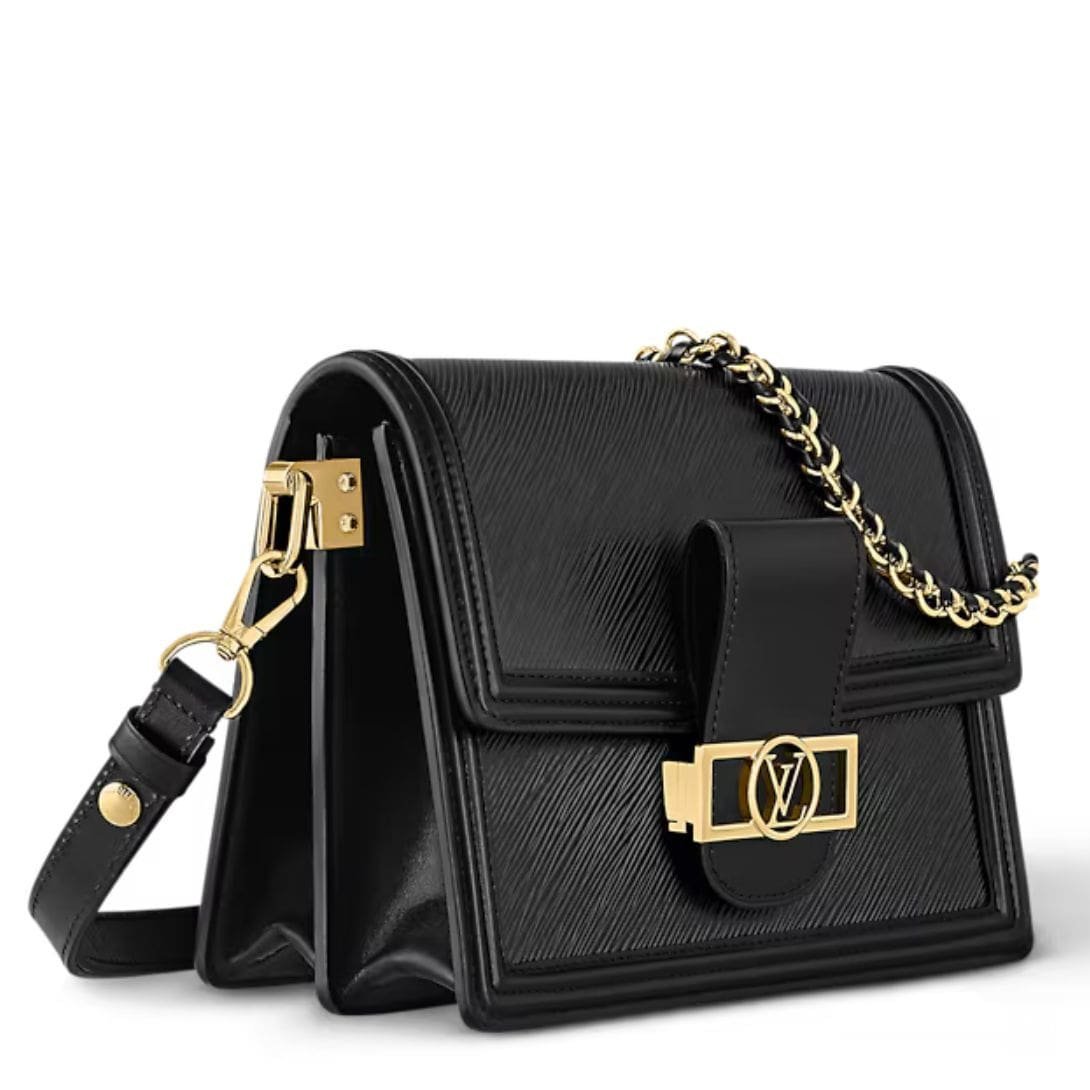 Inside, the LOUIS VUITTON DAUPHINE MM features two spacious compartments with a middle zipped pocket, as well as an additional back flat pocket for easy organization. The removable and adjustable strap offers versatility, allowing for comfortable shoulder or cross-body wear, while the removable chain adds a hint of glamour to any look.