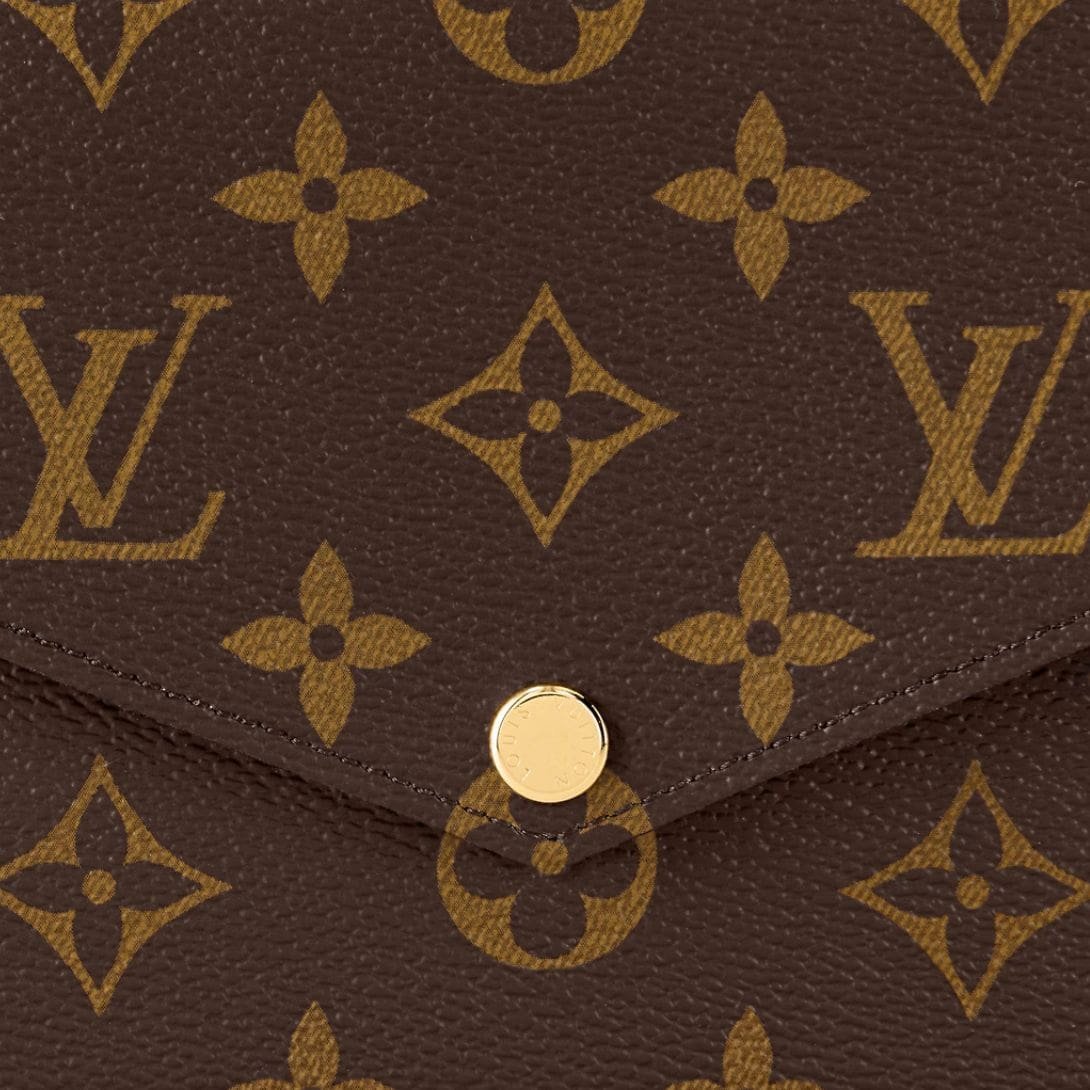 Crafted with meticulous attention to detail, the LOUIS VUITTON FELICIE POCHETTE features Monogram coated canvas and cowhide leather trim, accentuated by gold-color hardware. The leather used in this product adheres to the highest environmental standards, sourced from tanneries audited and certified by the Leather Working Group.