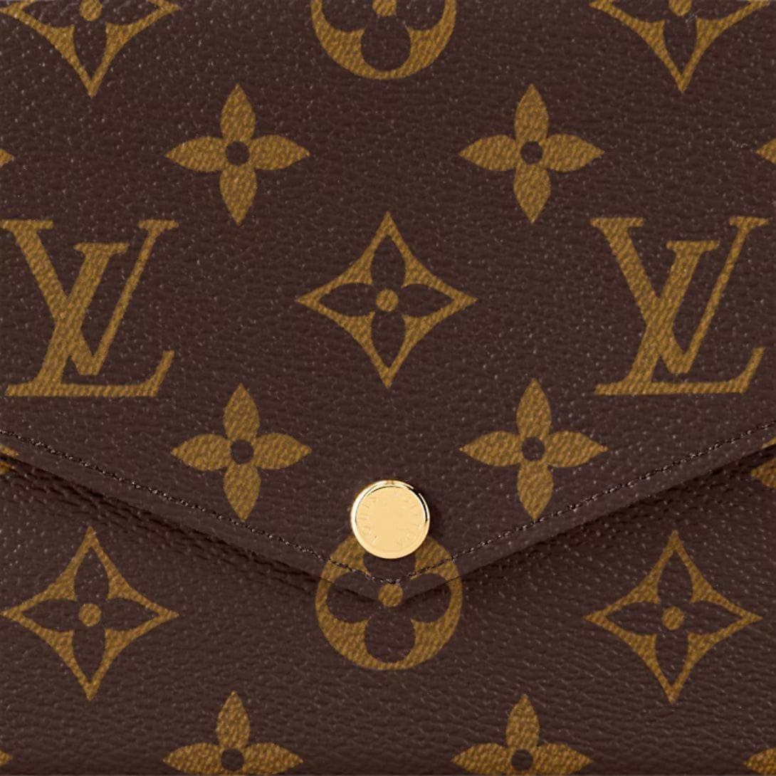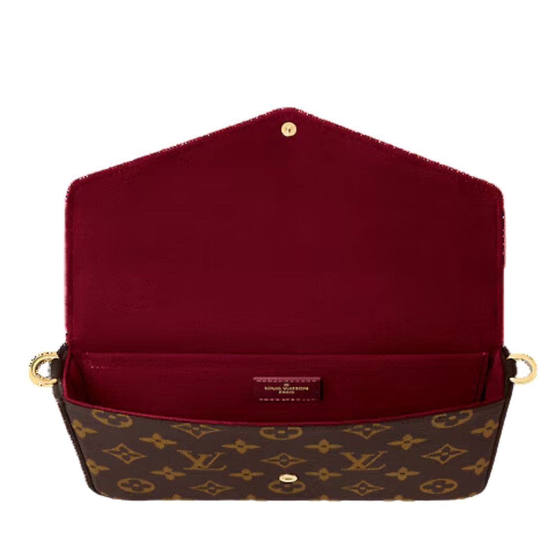 Measuring 8.3 x 4.7 x 1.2 inches, the LOUIS VUITTON FELICIE POCHETTE offers ample space within its chic silhouette. Inside, discover two removable pockets—a convenient zipped pocket for securing your essentials and a flat pocket featuring eight card slots for effortless organization.