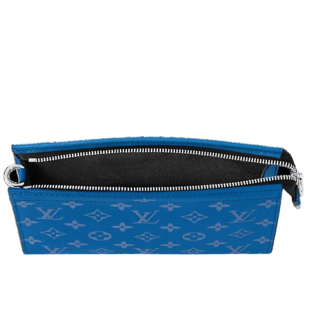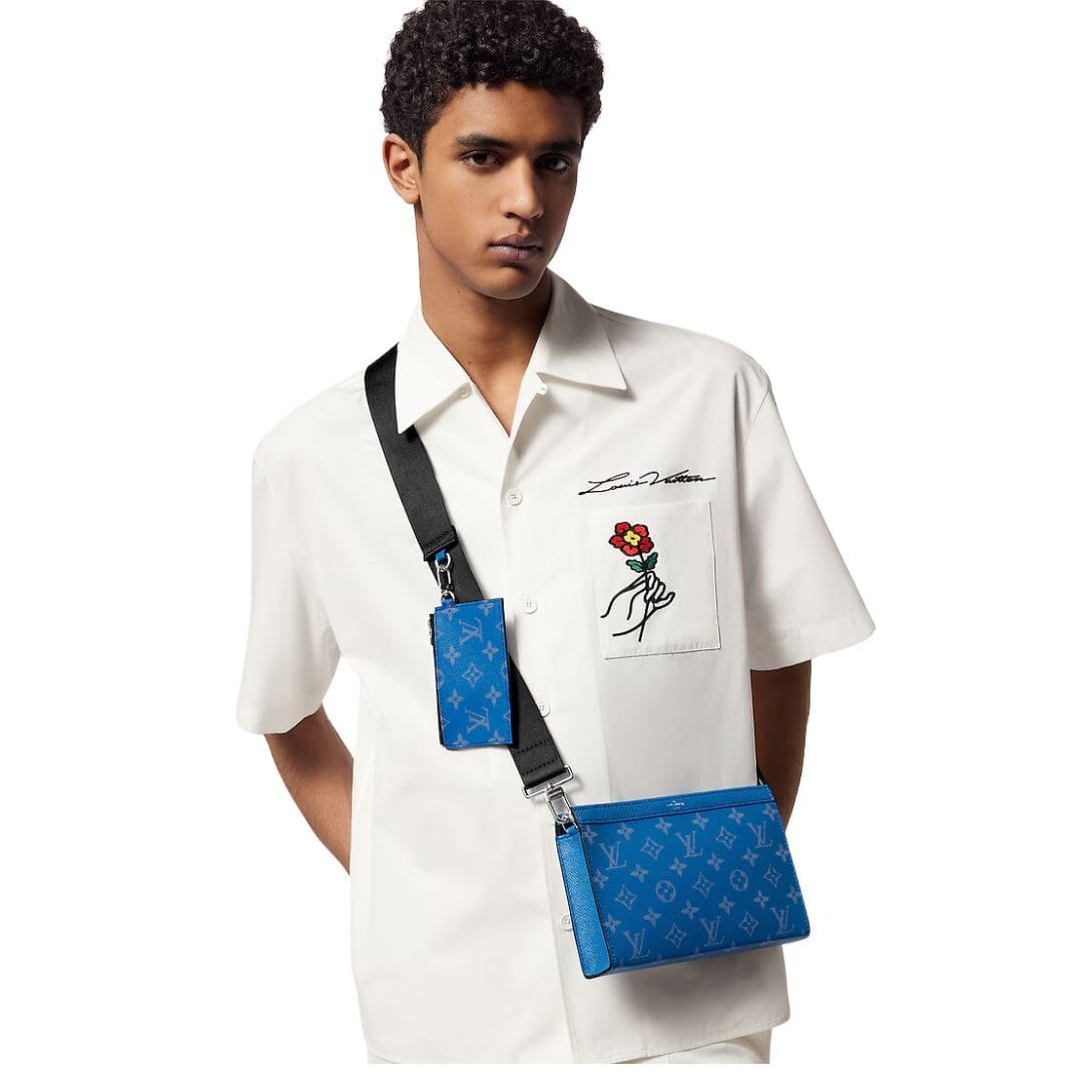 Introducing the LOUIS VUITTON GASTON WEARABLE WALLET , now refreshed with the latest Taigarama look for 2024, blending contemporary style with practicality. Crafted from durable Taiga cowhide leather in Agave Blue, this wallet exudes a sporty yet sophisticated vibe. Paired with the iconic Monogram canvas in a radiant shade of blue, it represents a fusion of tradition and modernity.