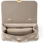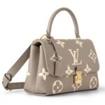 Available in an elegant dove gray and crème beige colorway, the Madeleine MM handbag features cowhide-leather trim and gold-color hardware, adding a touch of opulence to its timeless design. The iconic S-lock closure and leather key bell further enhance its Louis Vuitton pedigree, making it a coveted addition to your collection.