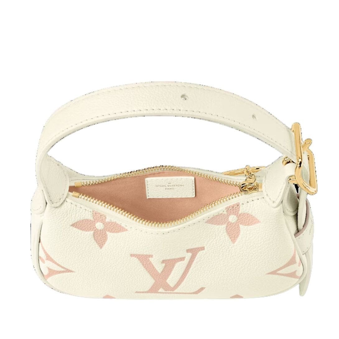 Introducing the seasonal reinvention of the LOUIS VUITTON MINI MOON bag, crafted in luxurious Monogram Empreinte leather boasting a refined bicolor palette of Latte White and Chamallow Pink. This compact yet chic accessory is a fusion of contemporary design and timeless elegance, perfect for the fashion-forward individual. The bag’s distinctive shape is accentuated by exquisite gold-tone hardware, adding a touch of sophistication to any ensemble.