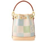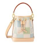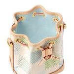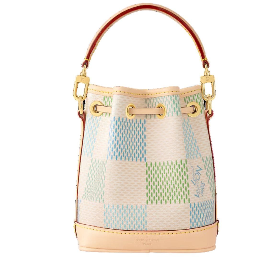 Introducing the LOUIS VUITTON NANO NOE from the enchanting Damierlicious collection, a delightful fusion of Damier canvas artistry and soft pastel hues. Crafted with meticulous attention to detail, this miniature rendition of the iconic Noé bag radiates a fresh, feminine allure, accentuated by its natural leather trim.